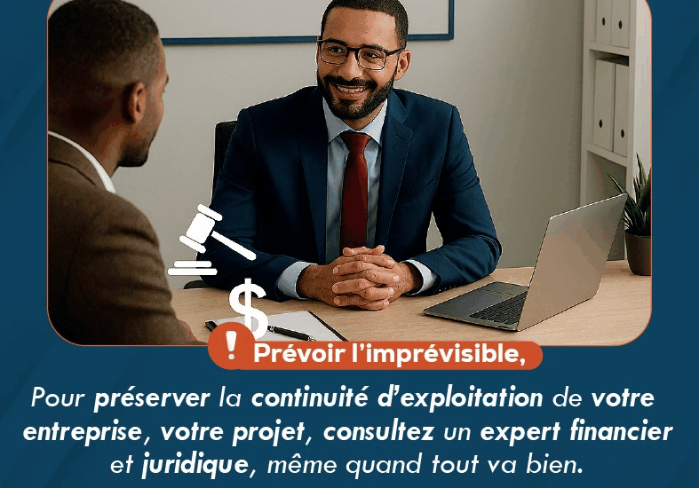 Pour prรฉserver la continuitรฉ dโexploitation de votre entreprise, votre projet, consultez un expert financier et juridique, mรชme quand tout va bien.